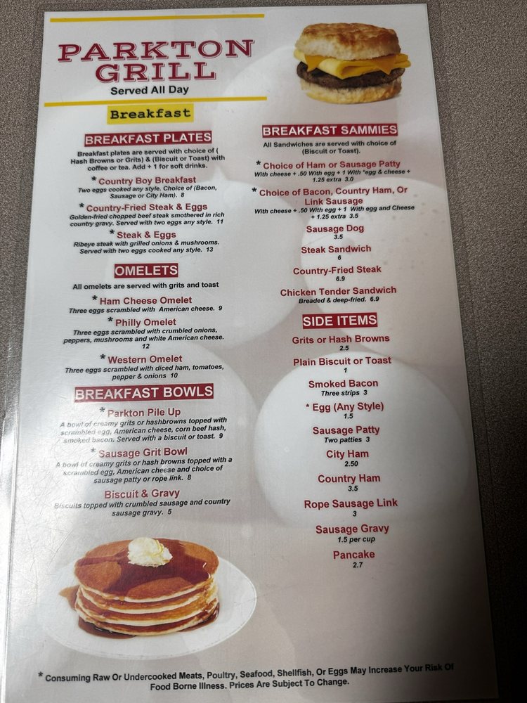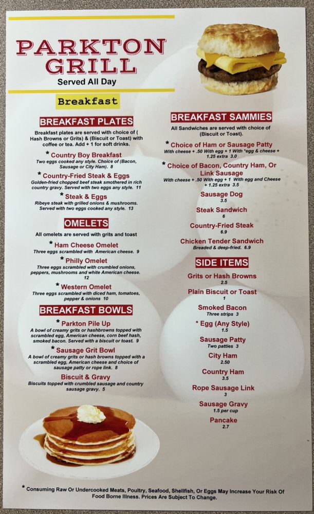 Parkton Grill on Main is a charming diner located in Hope Mills, NC, that offers a delightful breakfast menu. Customers praise the fast and friendly service, as well as the delicious food. The breakfast options include breakfast omelets like the Ham Cheese Omelet and Philly Omelet, breakfast plates like the Country Boy Breakfast, and breakfast sammies like the Chicken Tender Sandwich. The portions are just right, and the food is made quickly and served hot. The cozy atmosphere and attentive staff make dining here a pleasant experience. Don't miss out on their tasty dishes and excellent service at Parkton Grill on Main.